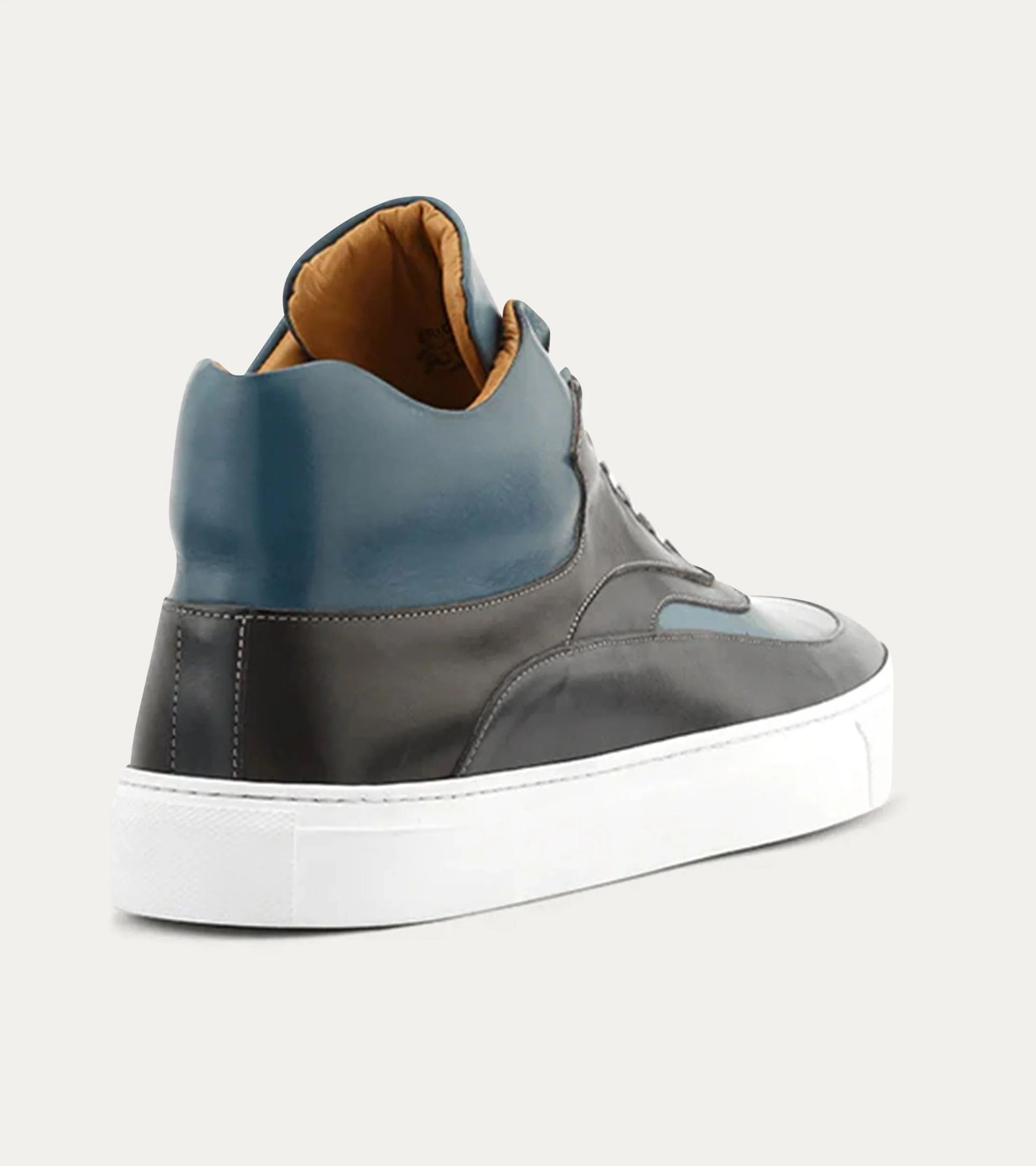 Like our dress shoes , they are made by hand from high-quality Italian leather, they are hand-dyed and hand burnished. Fourth generation Italian artisans have created this modern sneaker. Outfitted with durable, lightweight outsoles and lined with soft calf leather. These high-top men’s dress sneakers are the perfect for casual or formal occasions.